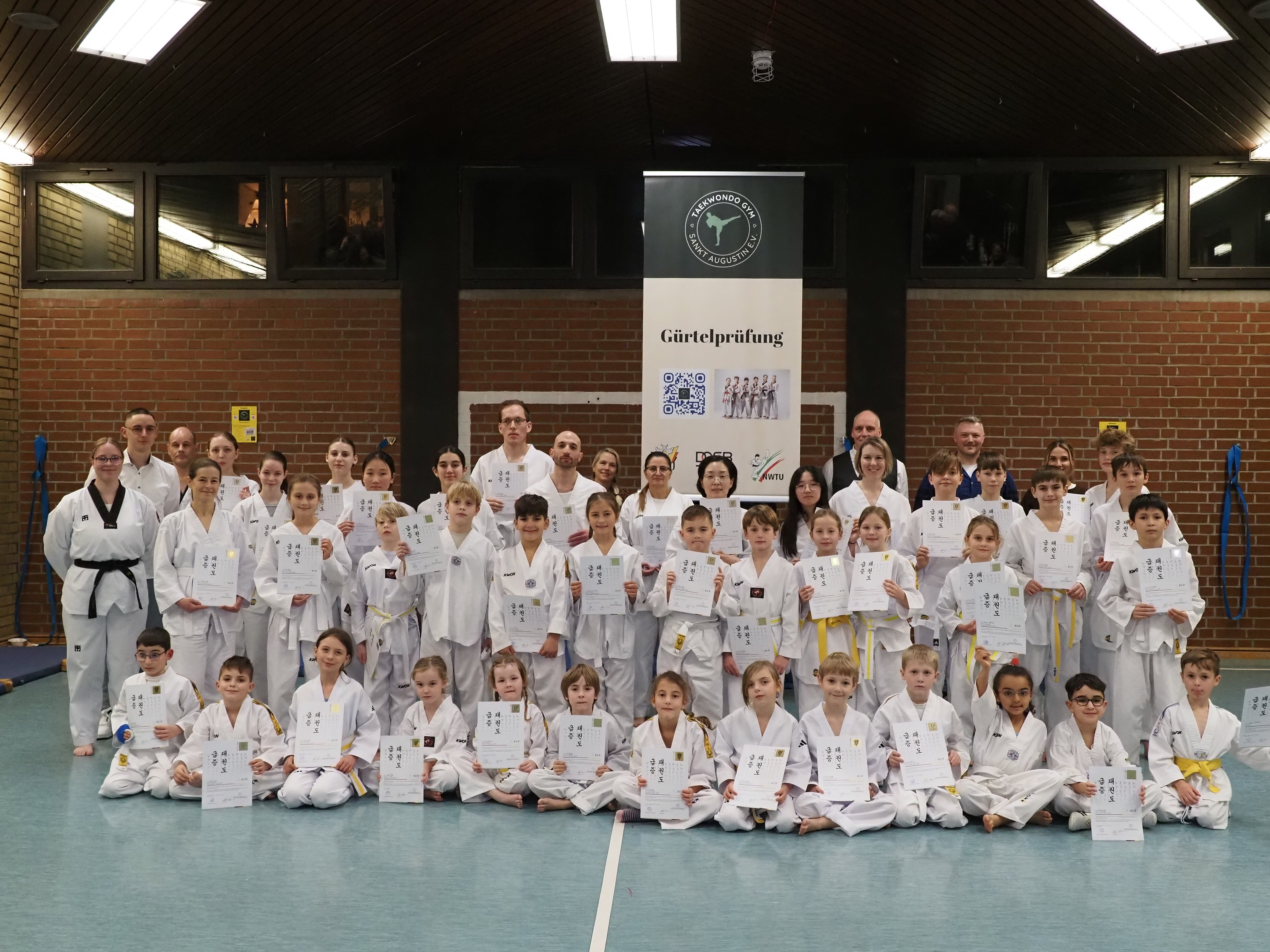 Nach mehrmonatiger Vorbereitungsphase durch unseren Trainer und DTU-Prüfer Ruben Montexier waren über 40 Taekwondo-Sportler(innen) des Taekwondo-Verein "Taekwondo-Gym-Sankt Augustin e. V. zur Gürtelprüfung zugelassen und dabei erfolgreich. Externe Taekwondo-Trainer (DAN-Träger) Mitglied der DTU waren bei der Gürtelprüfung extra nach Sankt Augustin dafür angereist. Ca. 100 Zuschauer waren dabei. Die Stimmung war unglaublich und die begeisterten Zuschauer wurden mit einem unvergesslichen Taekwondo-Erlebnis durch die Taekwondo-Sportler(innen) belohnt.